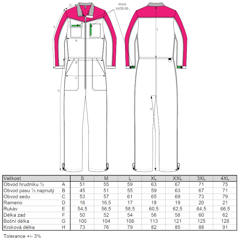 • spodní šíře rukávů nastavitelná pomocí suchého zipu