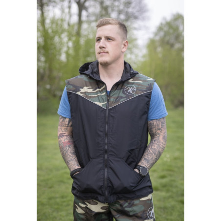 Pánská vesta s kapucí a slabou podšívkou, černo - maskáčová