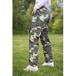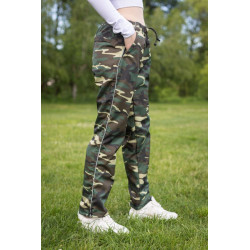 Dámské maskáčové kalhoty na gumu se zadní kapsou bez podšívky