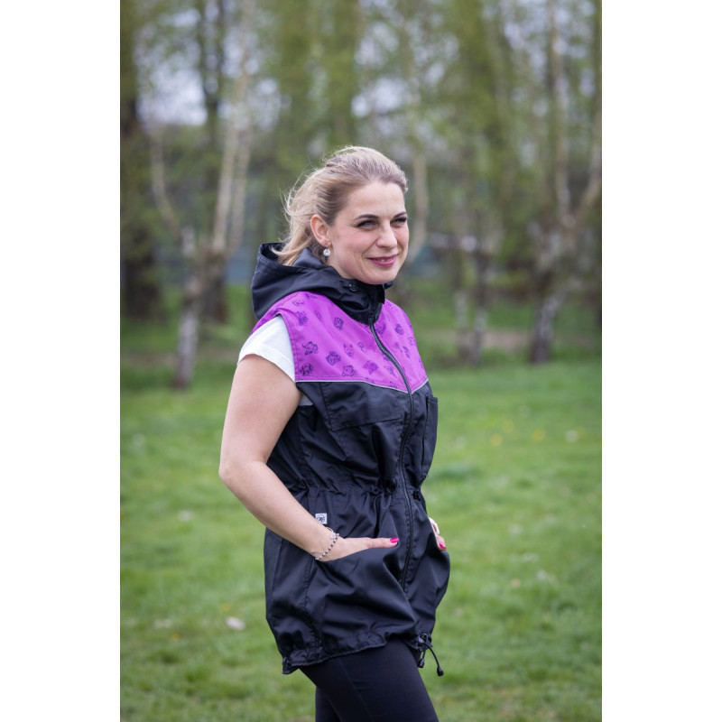 Dámská výcviková vesta CIRA s kapucí, kapsami a slabou podšívkou + potisk hlavy psů