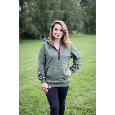Mikina unisex s kapucí, krátkým zipem a kapsou na mobil