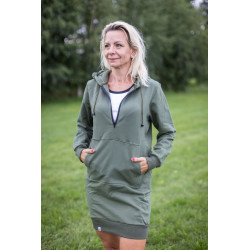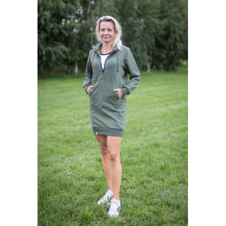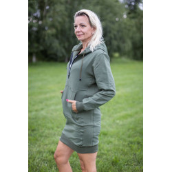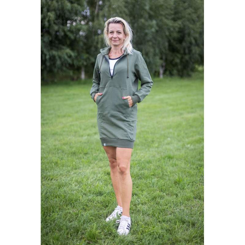 Mikinové šaty s krátkým zipem, kapucí a kapsou na mobil